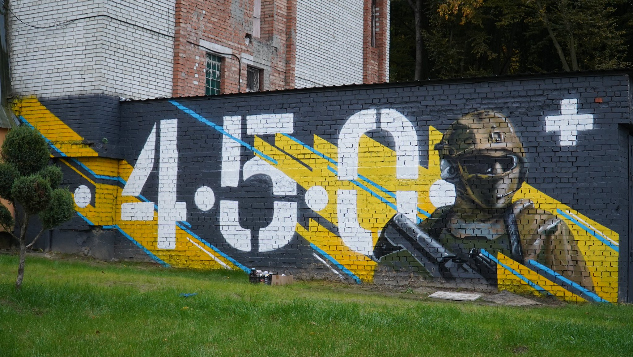 На ньому зображено сучасного українського воїна – символ мужності, стійкості та свободи. Поруч – надпис «4.5.0», що означає «все спокійно» або ж «все добре».